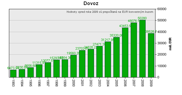 Dovoz v rokoch 1993-2026 (mil. EUR)